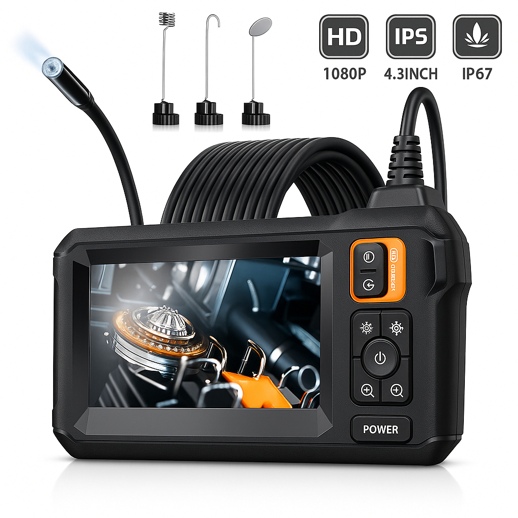La cámara de inspección 1080P HD es la herramienta ideal para trabajos precisos y versátiles. Con su cámara de alta definición, captura cada detalle en motores, tuberías y espacios reducidos. Su pantalla IPS de 4.3 pulgadas garantiza colores vibrantes y claridad desde cualquier ángulo, incluso en condiciones de luz intensa. Diseñada con impermeabilidad IP67, es perfecta para entornos húmedos, mientras que sus 8 luces LED ajustables ofrecen visibilidad óptima en áreas oscuras. El cable semirrígido de 5 metros permite maniobrar fácilmente en lugares difíciles de alcanzar. Su operación es sencilla, sin necesidad de apps ni conexión Wi-Fi, lista para usar al encenderla. Ideal para inspecciones técnicas, fontanería y mantenimiento general, combina durabilidad y rendimiento confiable en las tareas más exigentes.