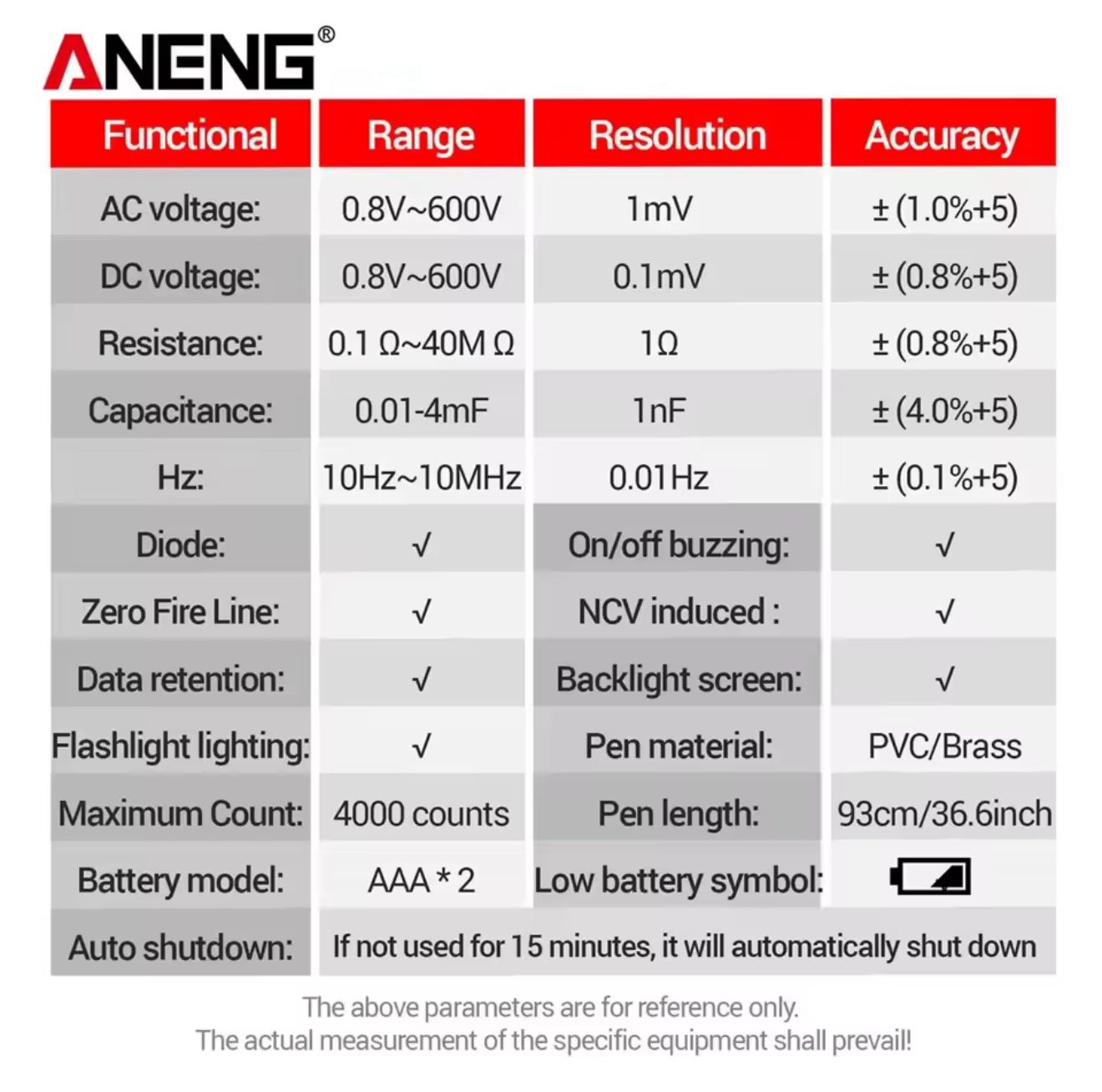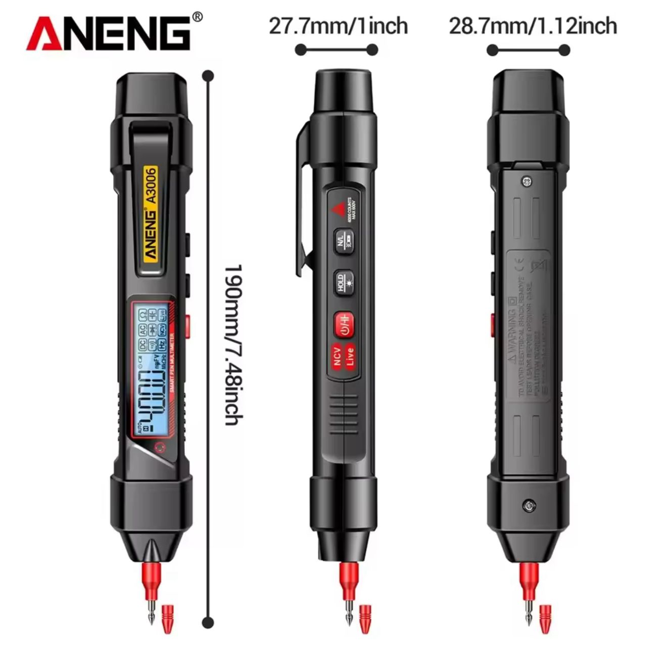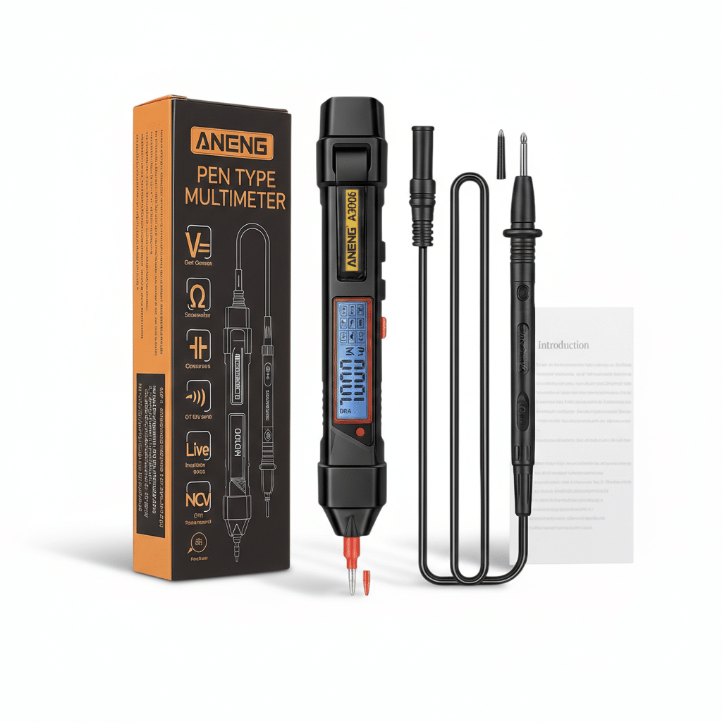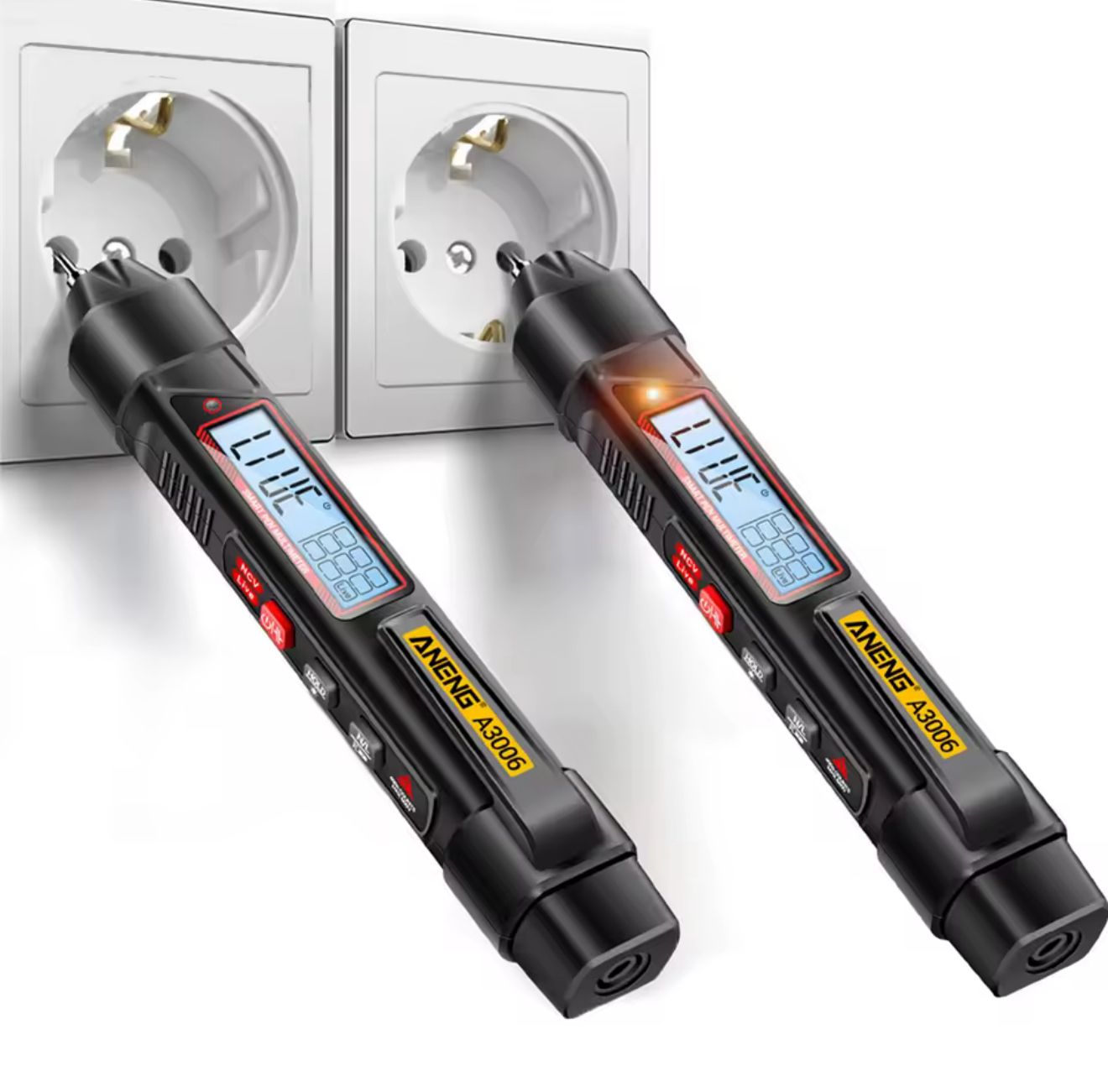 Este multímetro digital tipo pluma es la herramienta ideal para profesionales y aficionados en electricidad. Su diseño multifuncional combina un multímetro con la precisión de una pluma de medición, ofreciendo versatilidad y rendimiento en cualquier proyecto. Incluye una pantalla LCD retroiluminada y una luz integrada para trabajar con seguridad incluso en condiciones de poca luz. Su función avanzada de detección de línea de fuego y línea cero te permite realizar tareas de forma segura, sin contacto directo. Además, cuenta con una punta desmontable y reemplazable, que lo hace adaptable a diferentes necesidades.