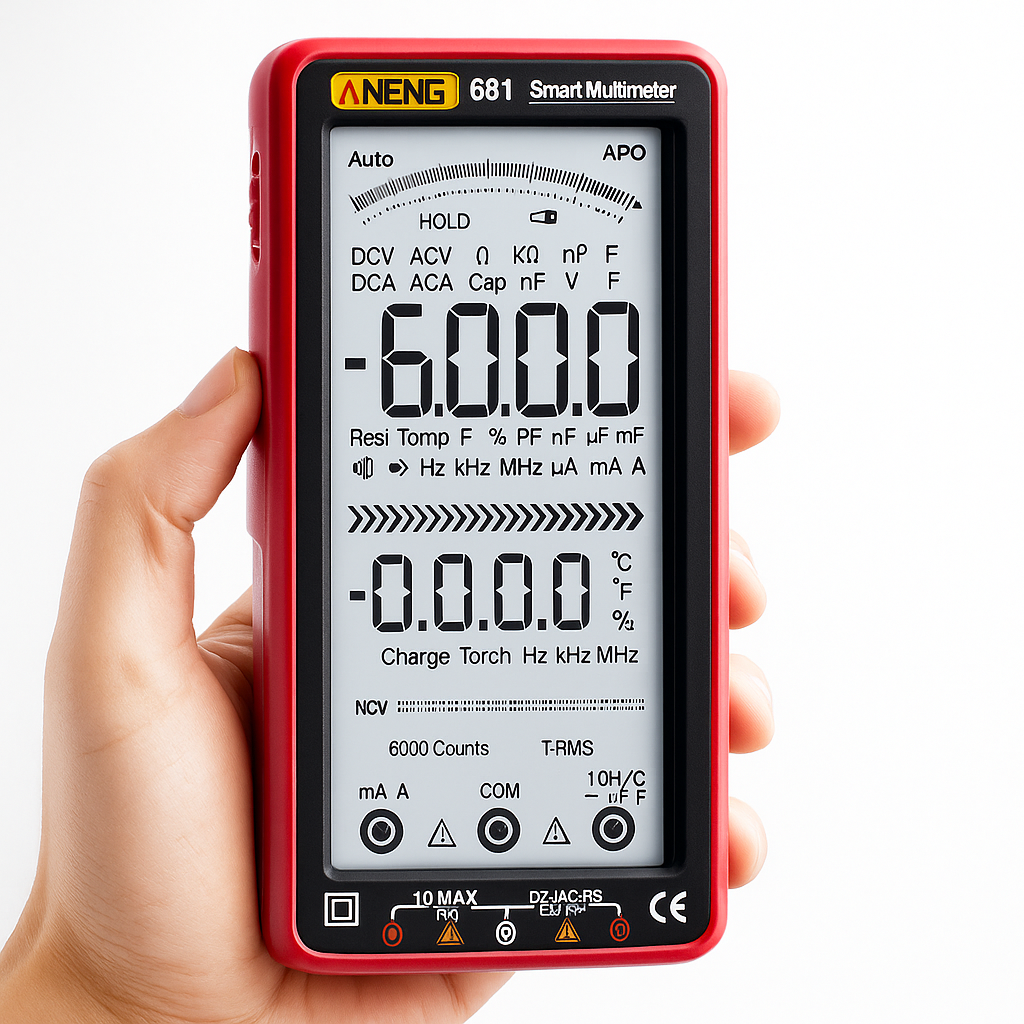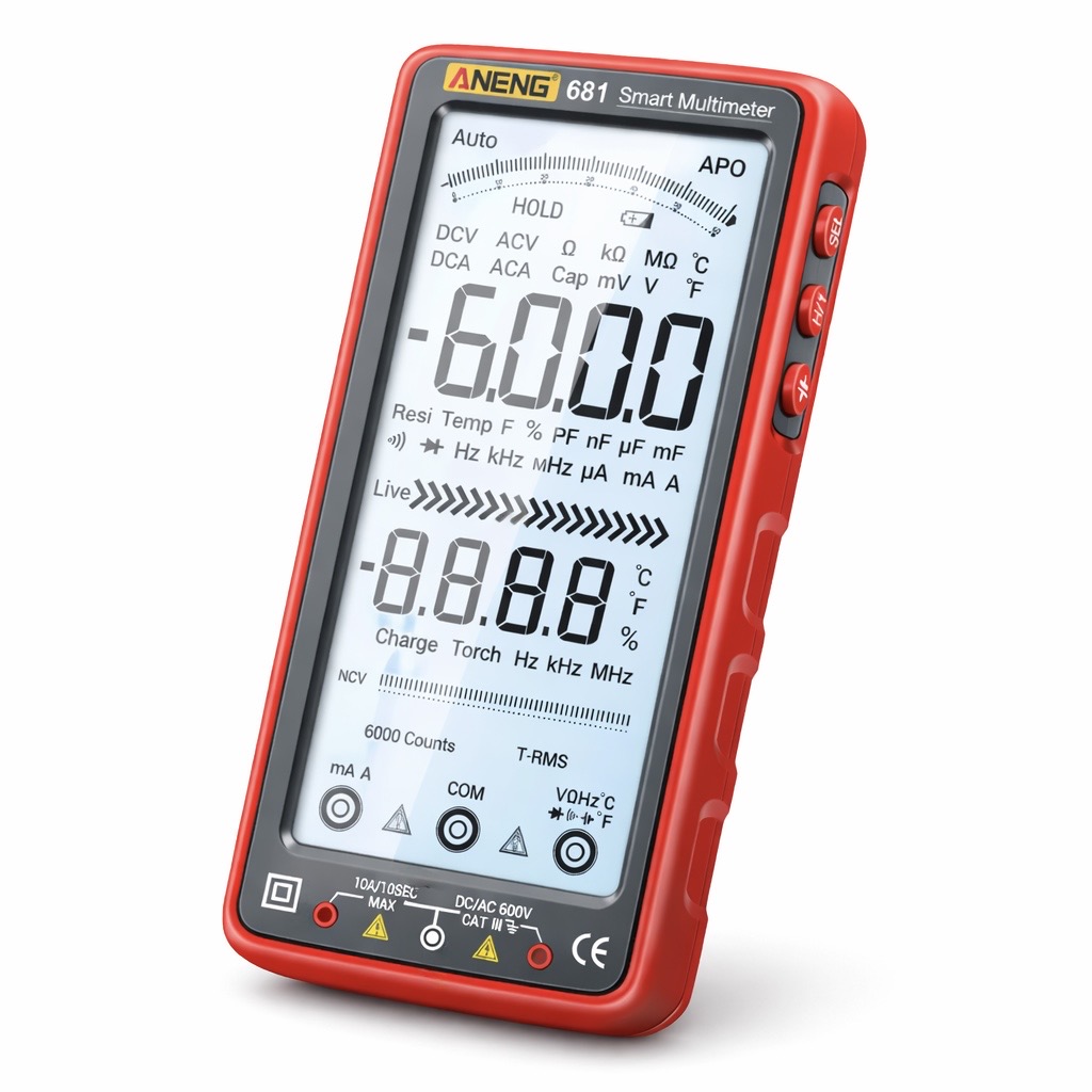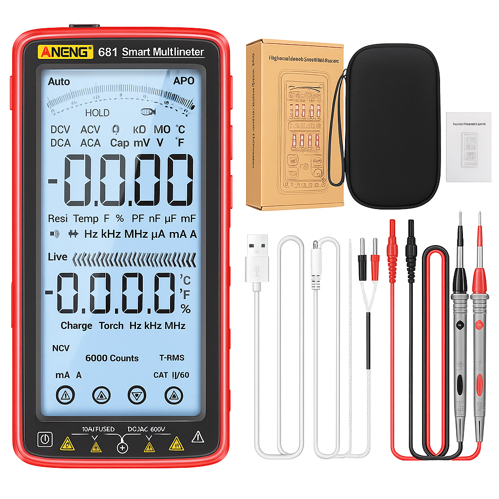 Diseñado para usuarios exigentes, este multímetro digital combina tecnología de medición avanzada con un diseño compacto y resistente. Su función de detección sin contacto ofrece máxima seguridad, mientras que la pantalla LCD retroiluminada garantiza una lectura clara en todo momento. Con capacidad de 6000 conteos, escaneo automático RMS y múltiples funciones de medición, es ideal para profesionales y aficionados. Además, es recargable, portátil y viene con linterna integrada para trabajar en condiciones de poca luz.