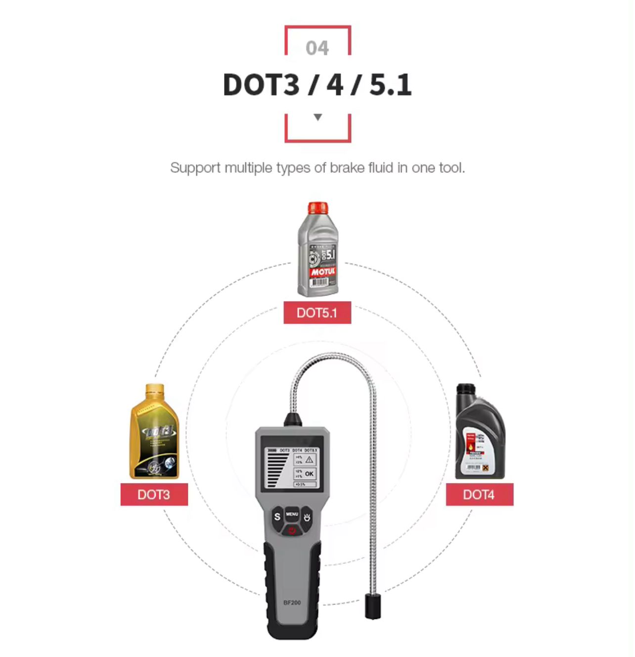 Garantiza el buen estado de tu sistema de frenos con el KINGBOLEN BF200, un dispositivo avanzado que ofrece lecturas rápidas y precisas. Su pantalla LED de alta resolución proporciona resultados claros en segundos, ayudándote a mantener la seguridad en cada trayecto.