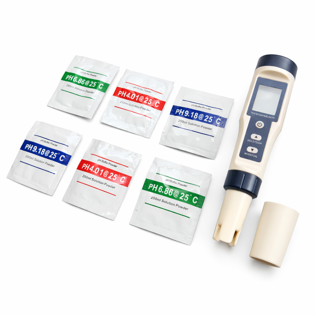 El Probador Digital 5 en 1 es la herramienta perfecta para medir con total precisión la calidad del agua. Ideal para proyectos de hidroponía, investigaciones de laboratorio y otras actividades que requieran agua de calidad superior. Este medidor multifuncional te permite medir pH, TDS, EC, salinidad y temperatura con resultados rápidos, precisos y confiables. Con su diseño compacto, pantalla LCD retroiluminada y funciones avanzadas como la compensación automática de temperatura (ATC) y la calibración fácil, es la herramienta perfecta para profesionales en movimiento.